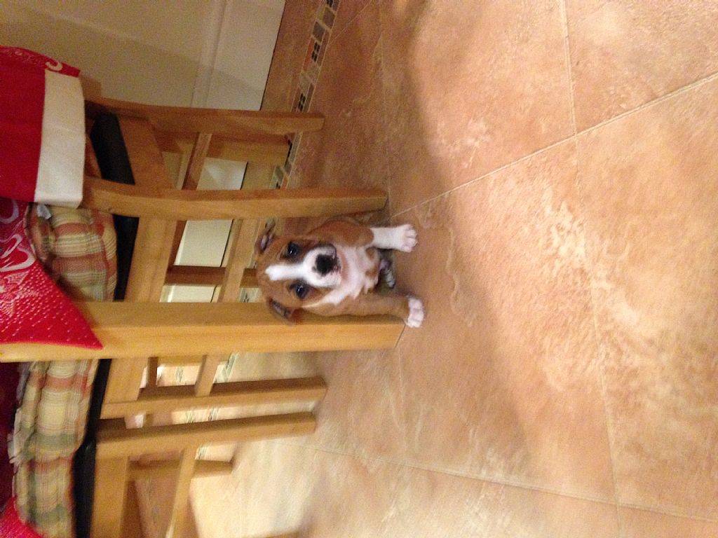 Oscar aged 19 weeks. Getting some expert training from his "Nanny", Tina (Hubble).