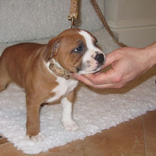 Oscar was the first puppy to be born in Tess's first litter. I tried not to have a favourite, but he has been my favourite right from the start. He has grown up to be the most gorgeous dog anyone could wish for. Everyone that knows him absolutely loves him. He has the best temperament with people and other dogs. He is such a faithful, loving dog and is never far from my side, even when I go out in my wheelchair he trots along beside me.