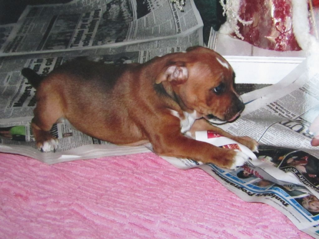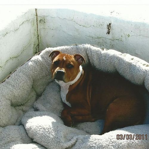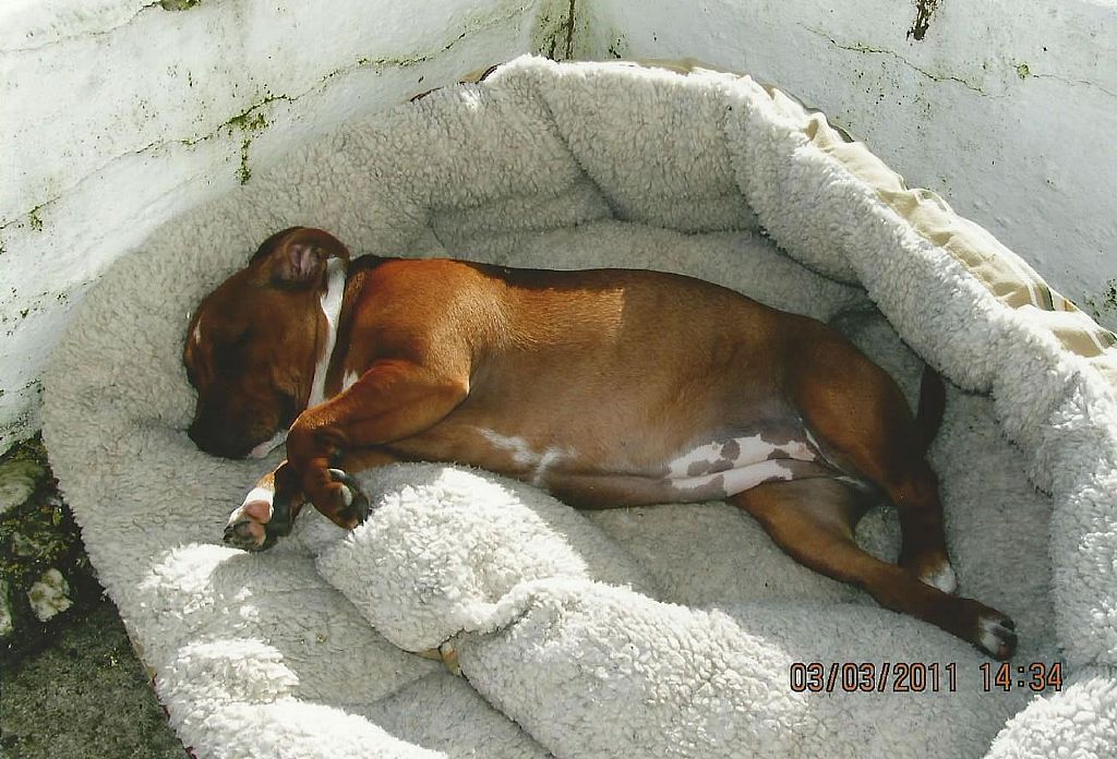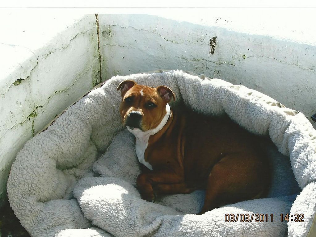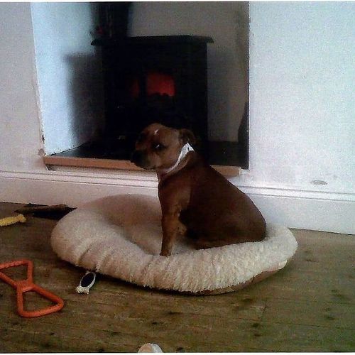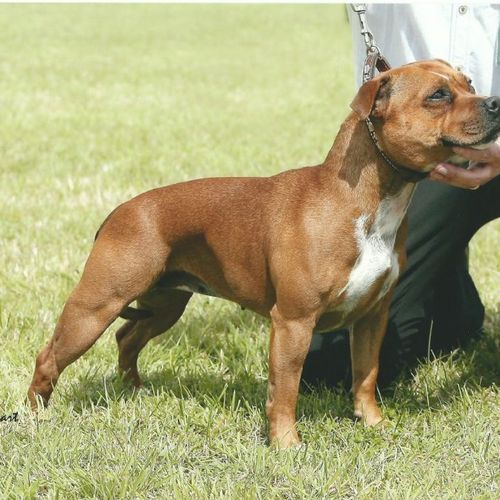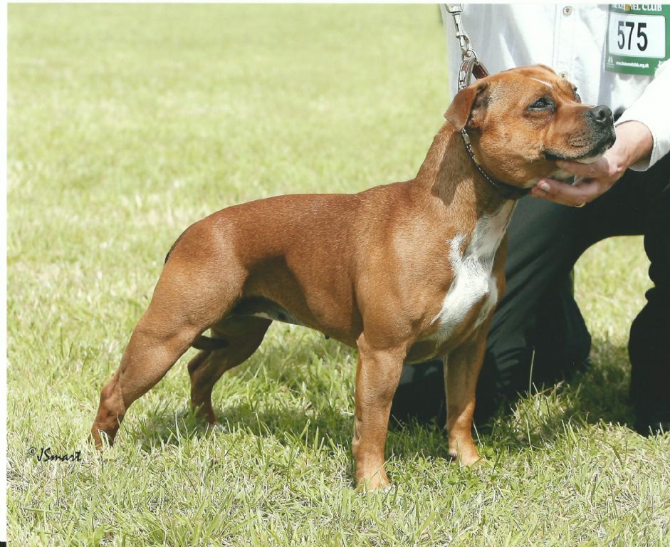 Tess retired from the showring in November 2015, only making the occasional appearance at local shows until she reached the age of 7 - officially a Veteran!! She competed in her first Veteran class at The Staffordshire Bull Terrier Club Championship Show under Maureen Ward on Sunday 12th November 2017. From a class of 11 bitches, Tess was placed VHC, only beaten by 4 champion bitches, and beating several other champions, who walked out of the ring without a card!! Tess had showed her socks off for Cameron, who handled her to perfection that day.