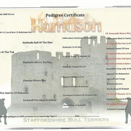 Our puppies arrived on Saturday 9th November 2013!!! Tess (Jefmor Fire and Ice of Hamason) and the sire is Cruz (The Man At The Top ) owned and bred by Tina & Kevin Hubble. Check out the Gallery to see pictures of the Babies and their Family.